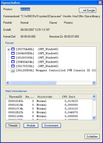 Nach einem Doppelklick auf einen Prozess erhält man in dem Eigenschaftsfenster